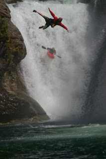 I just want to say to the community of shit-runners out there, that although we now have developed safer waterfall techniques like the tuck-n-toss and the boof-stomp blind faith, we still need to be mindfull of the unpredictable nature of nature itself. I have been fortunate to stay relatively healthy over the last 7 years of running big waterfalls, but I have taken some beatings along with slaying some beasts. Be carefull out there. I'm pretty stoked about some big water playboating for a while. Congratulations Karl and Tara - I'm sorry I almost broke my back at your wedding!